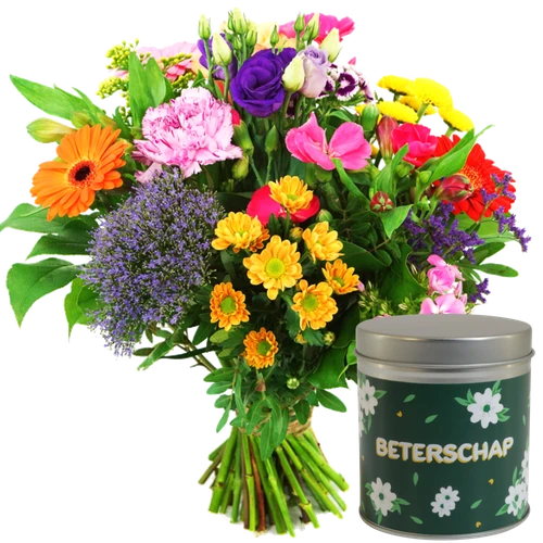 Beterschap bloemen bestel je bij BoeketCadeau.nl met een exclusieve beterschap blikje snoep zo is de ontvanger snel weer beter.