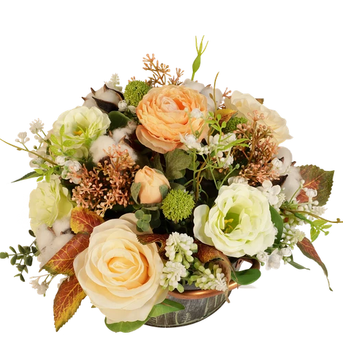 Een biedermeier in het zalm wit van kunstbloemen met prachtige bloemen. Bekijk hier! Ideaal voor in huis. Staan natuurlijk langer dan echte bloemen. Bestel eenvoudig. Retouren is mgelijk.