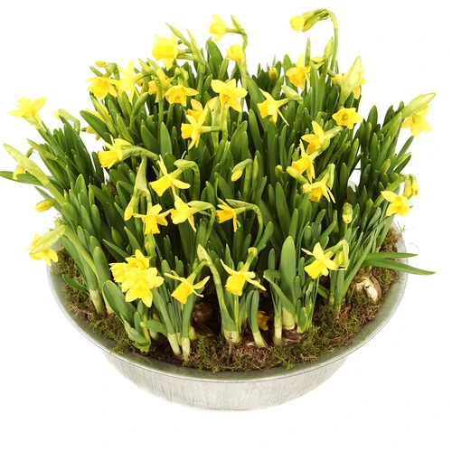 Narcissen als bloembollen in een ronde schaal bestellen en laten bezorgen door BoeketCadeau.nl