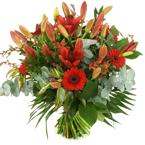 Wil jij iemand het kerstgevoel geven bestel dan deze rode lelie’s gecombineerd met rode bloemen.