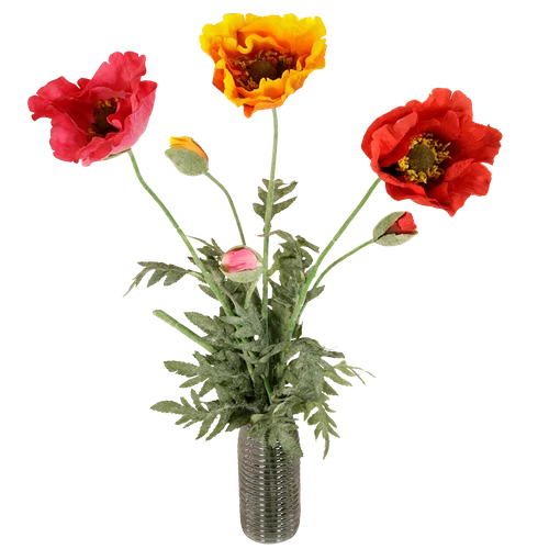 Prachtige grote klaprozen in drie verschillende kleuren, een eyecatcher voor in huis. Tijdloos en altijd bloemen in huis!