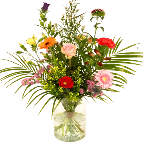 Een plukboeket. Altijd verse bloemen. Los gebonden. Een kleurrijk geheel. Makkelijk bestellen. Snel bezorgd. Thuiswinkel Lid.