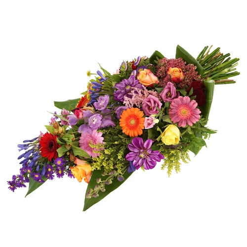 Rouwboeket bont met veel kleurrijke bloemen vanaf € 27,95 | Thuiswinkel lid. Vers garantie. Uitvaart bloemen.