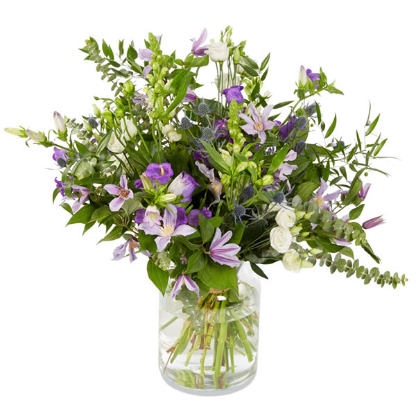 Breng fantasie tot leven met deze dromerige mix van wilde bloemen. Levendig groen en zacht paars met bloemen zoals leeuwenbekje, eustoma, eryngium en alstroemeria vormen samen dit buitenaardse veldboeket. Een prachtige expressie van liefde en elegantie die de verwachtingen overtreft zonder je budget te overschrijden.